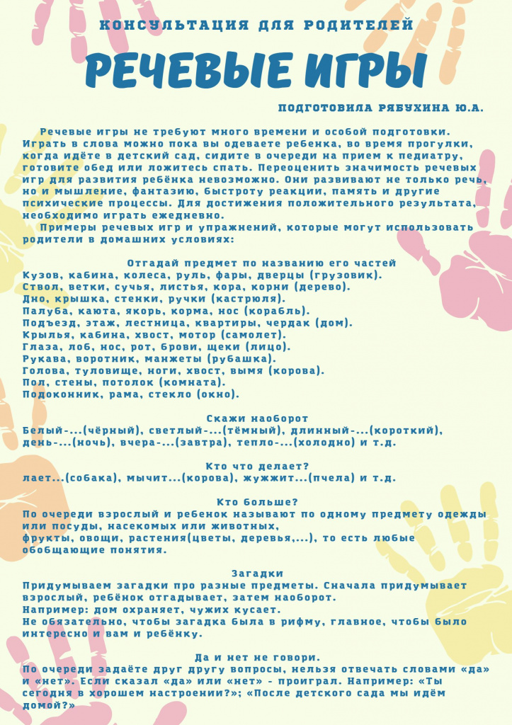 - Консультация для родителей «Речевые игры»