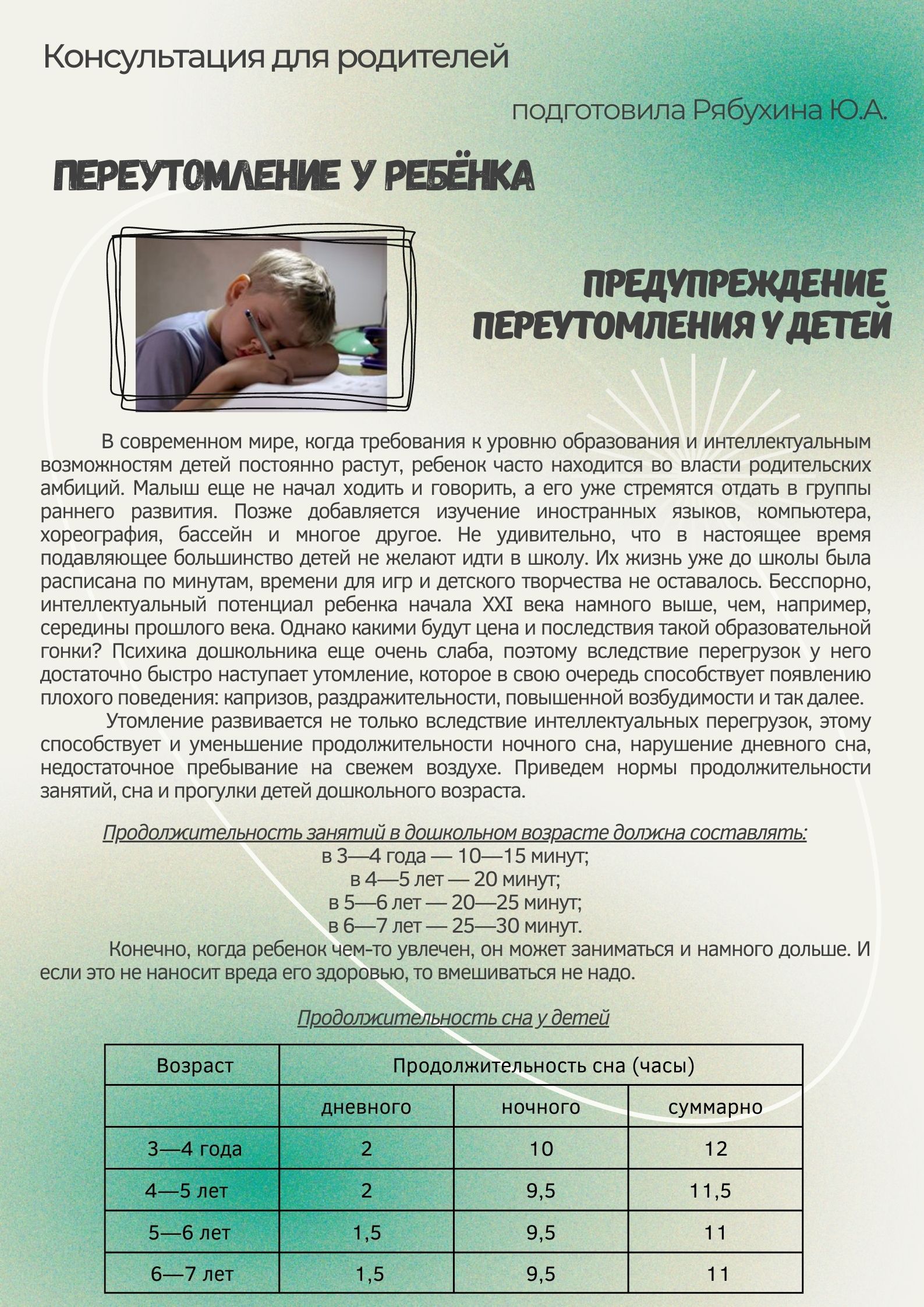- Консультация для родителей «Возрастные особенности детей 6-7 лет»