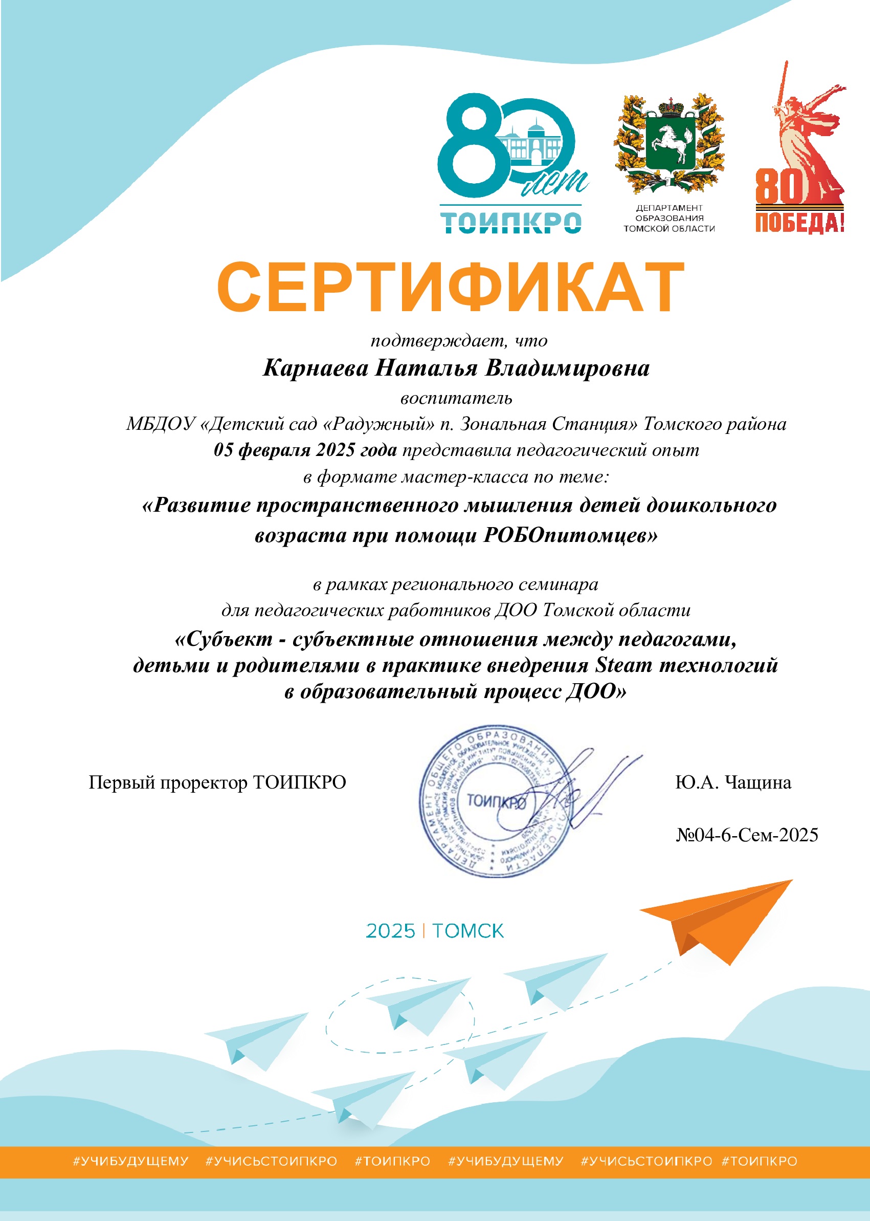 Прошла в 2022г. курсы переквалификации в ОГБПОУ ТГПК программе «Дошкольное образование».