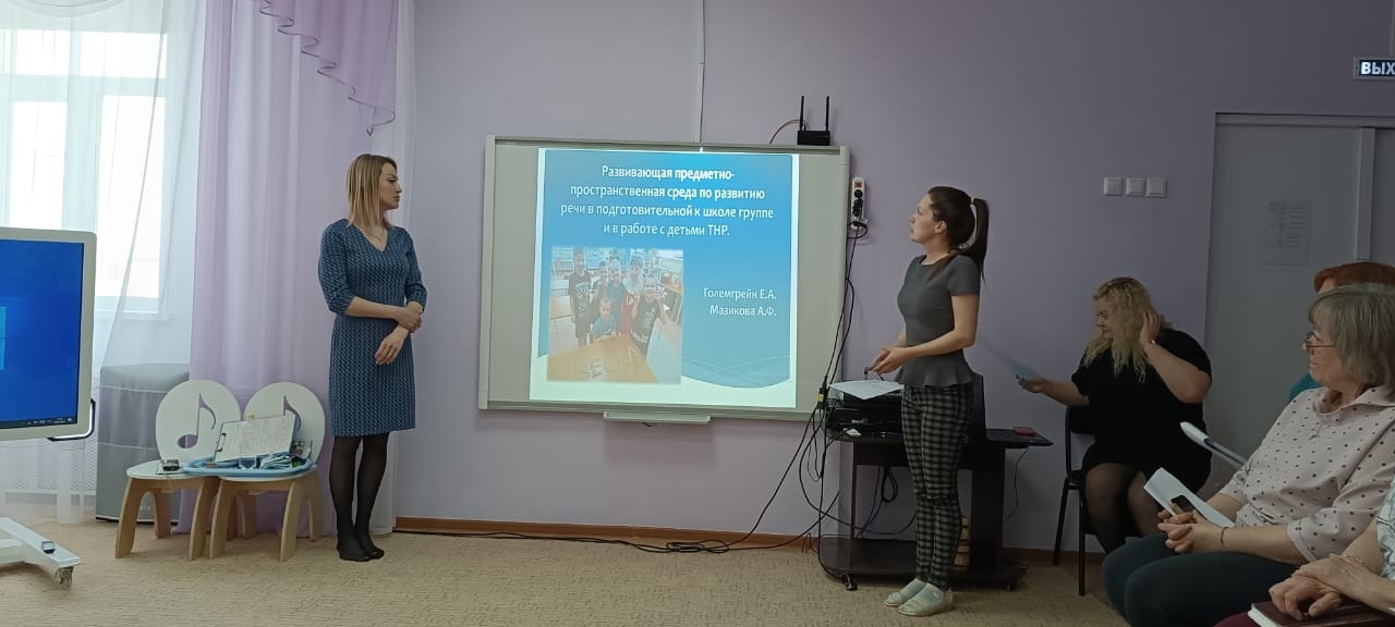 2) «РППС по развитию речи в подготовительной школе группе и в работе с детьми ТНР» представили воспитатели Мазикова А.Ф., Големгрейн Е.А.