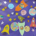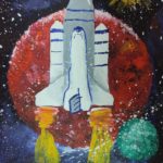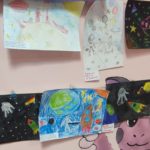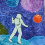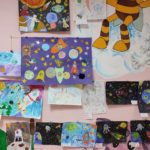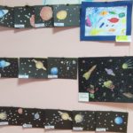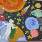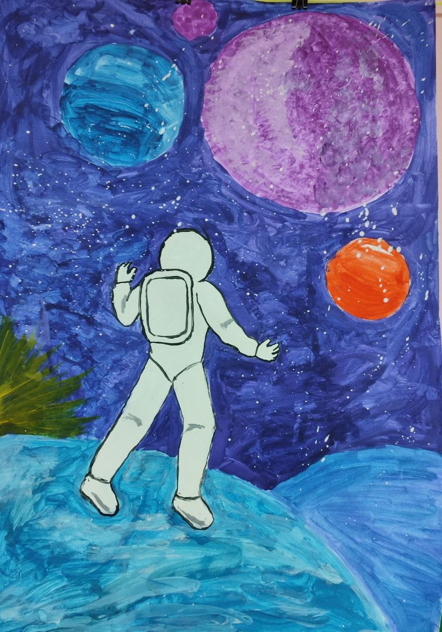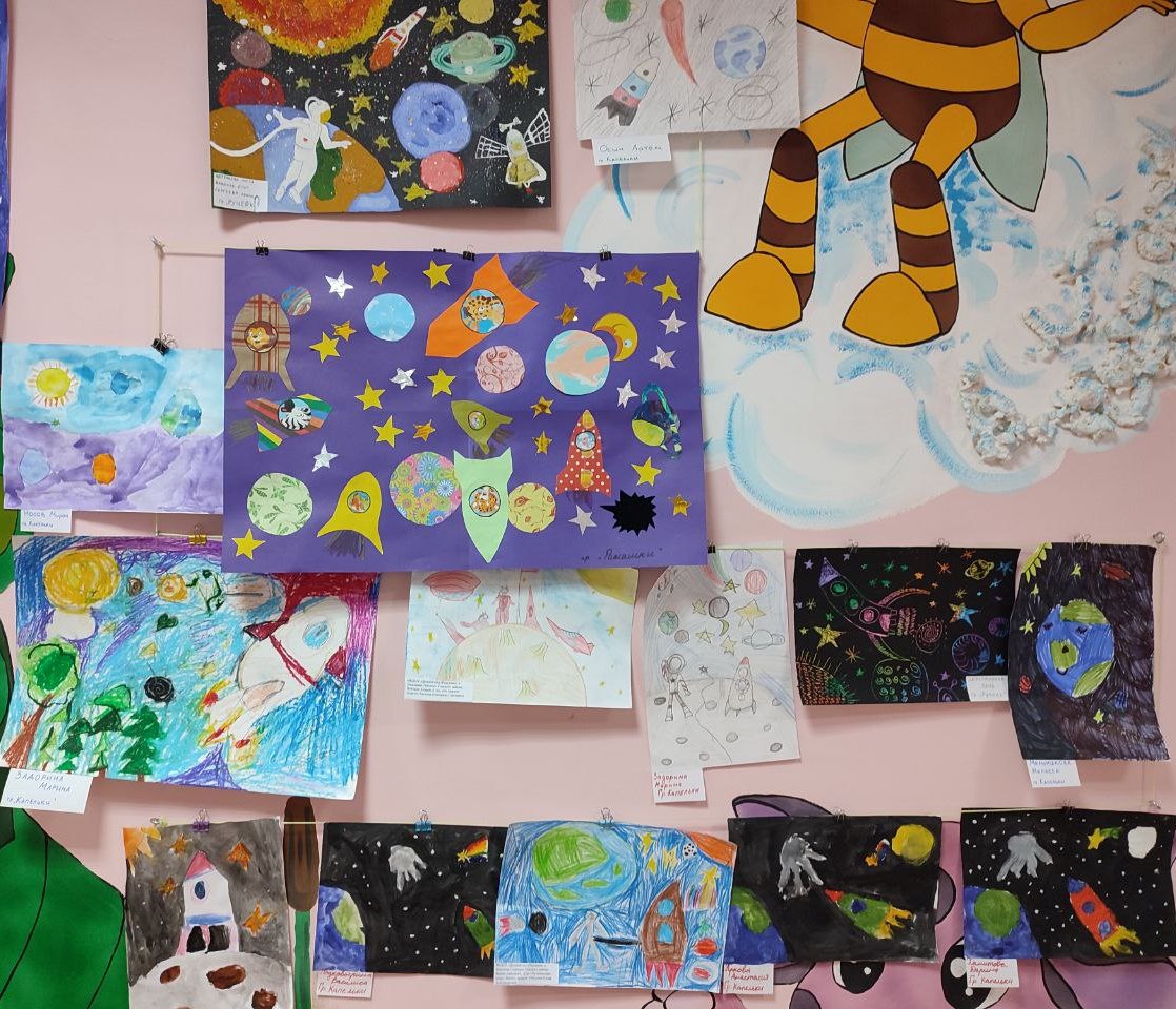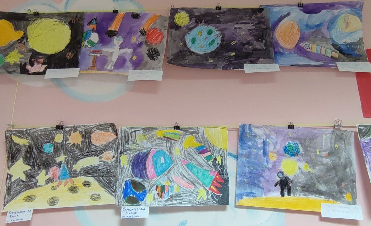 На рисунках можно было увидеть разноцветное мерцание звезд, завораживающие яркие следы от падения метеоритов. Космические корабли, бороздящие просторы вселенной, и конечно же космонавтов.