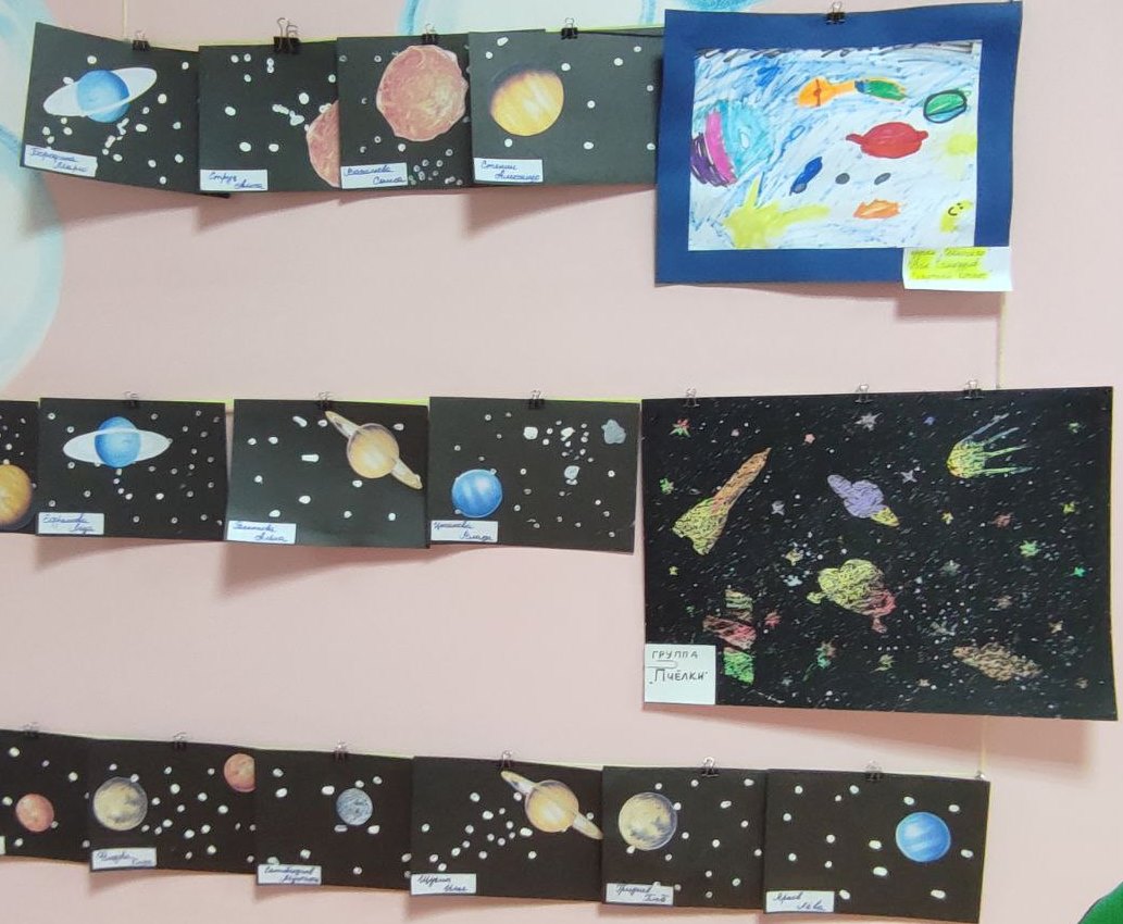 10 – 14 апреля в нашем детском саду проходила тематическая выставка детских рисунков «Космос в рисунках детей», посвященная Дню космонавтики.
